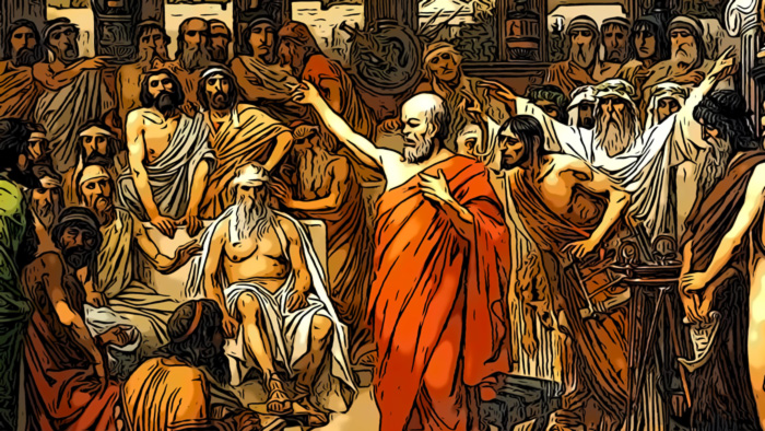 Image insipred by the painting “Socrates’ address” from Louis J. Lebrun, 1844-1900.